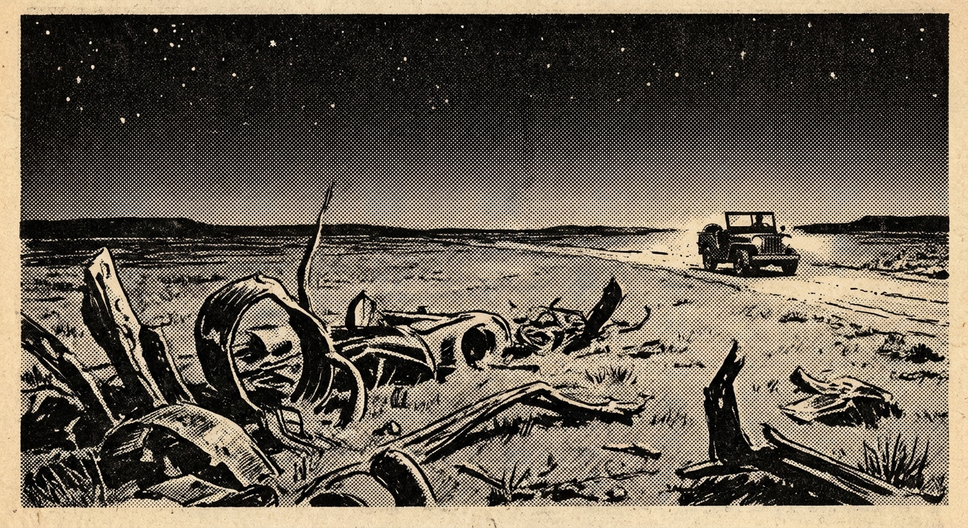 Something falls from the New Mexico sky in the first week of July 1947. Rancher W.W. "Mac" Brazel rides out after a severe electrical storm to check on his sheep and finds a debris field unlike anything he has seen in 30 years of working the land. Tinfoil-like material. Beams. Strange paper. The debris stretches for three-quarters of a mile across a shallow impact gouge in the earth.